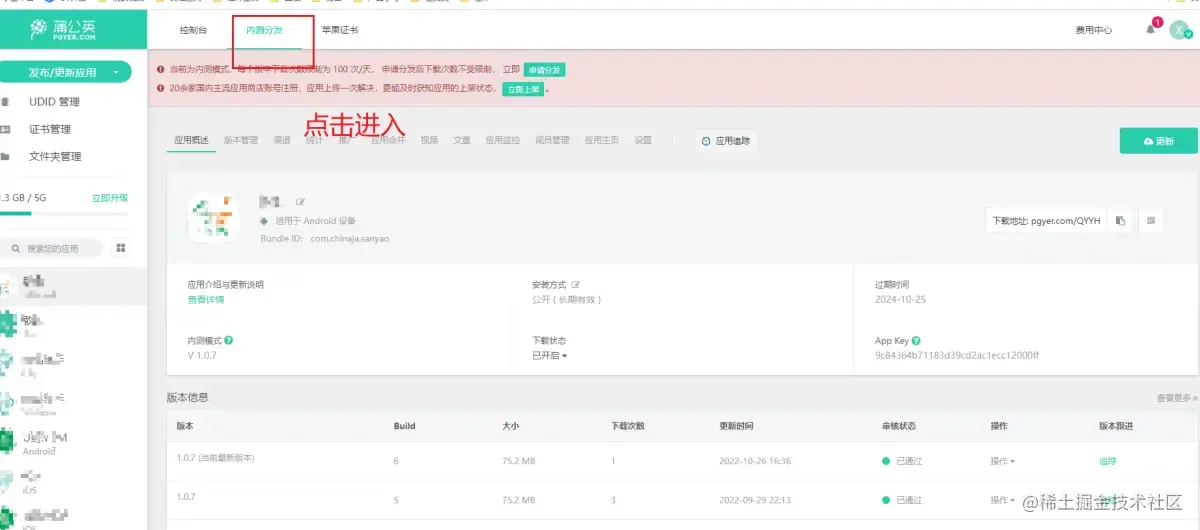 3.打包上传发布至内测发布平台