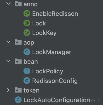 项目启动类通过EnableRedisson引入LockAutoConfiguration实例然后通过它上面的注解@Import(LockAutoConfiguration.class) 引入LockAutoConfiguration类,这个类里面定义了Spring扫描分布式锁的相关类的包名。代码如下: