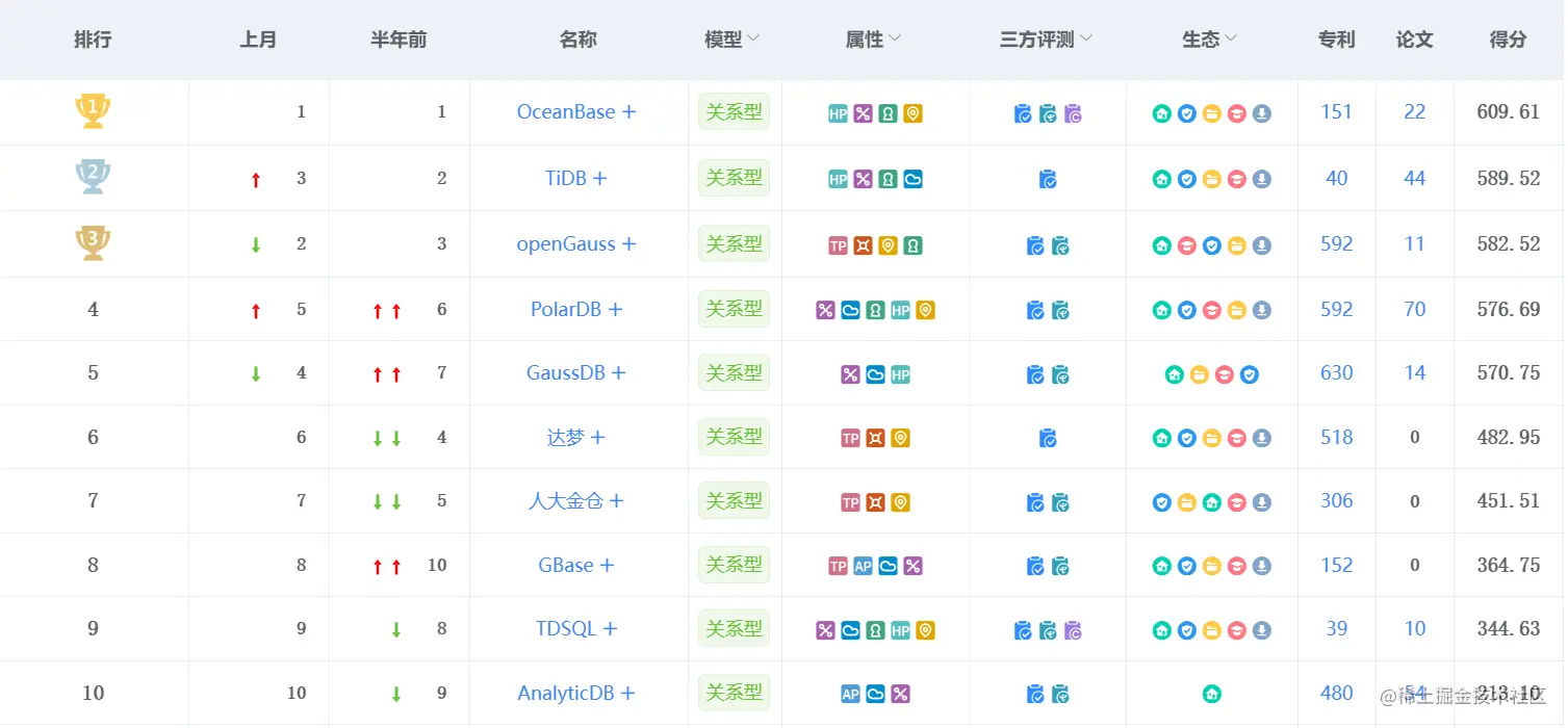 - 国产数据库流行度排名规则-墨天轮