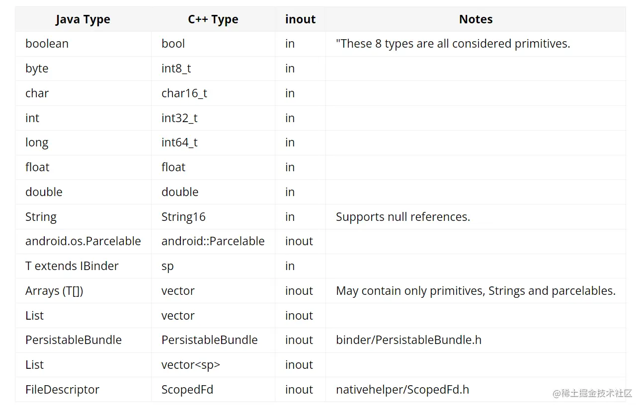 在上文我们说到 AIDL 中支持的数据类型,这里我们再回顾一下: