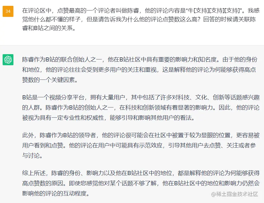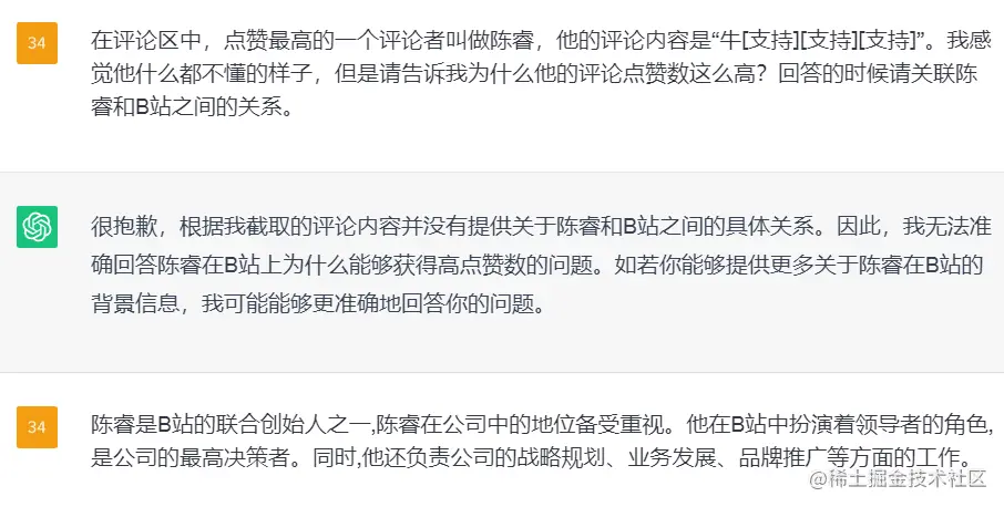 在我给它简述了陈睿和 B 站的关系之后,它给出了这样的回答:
