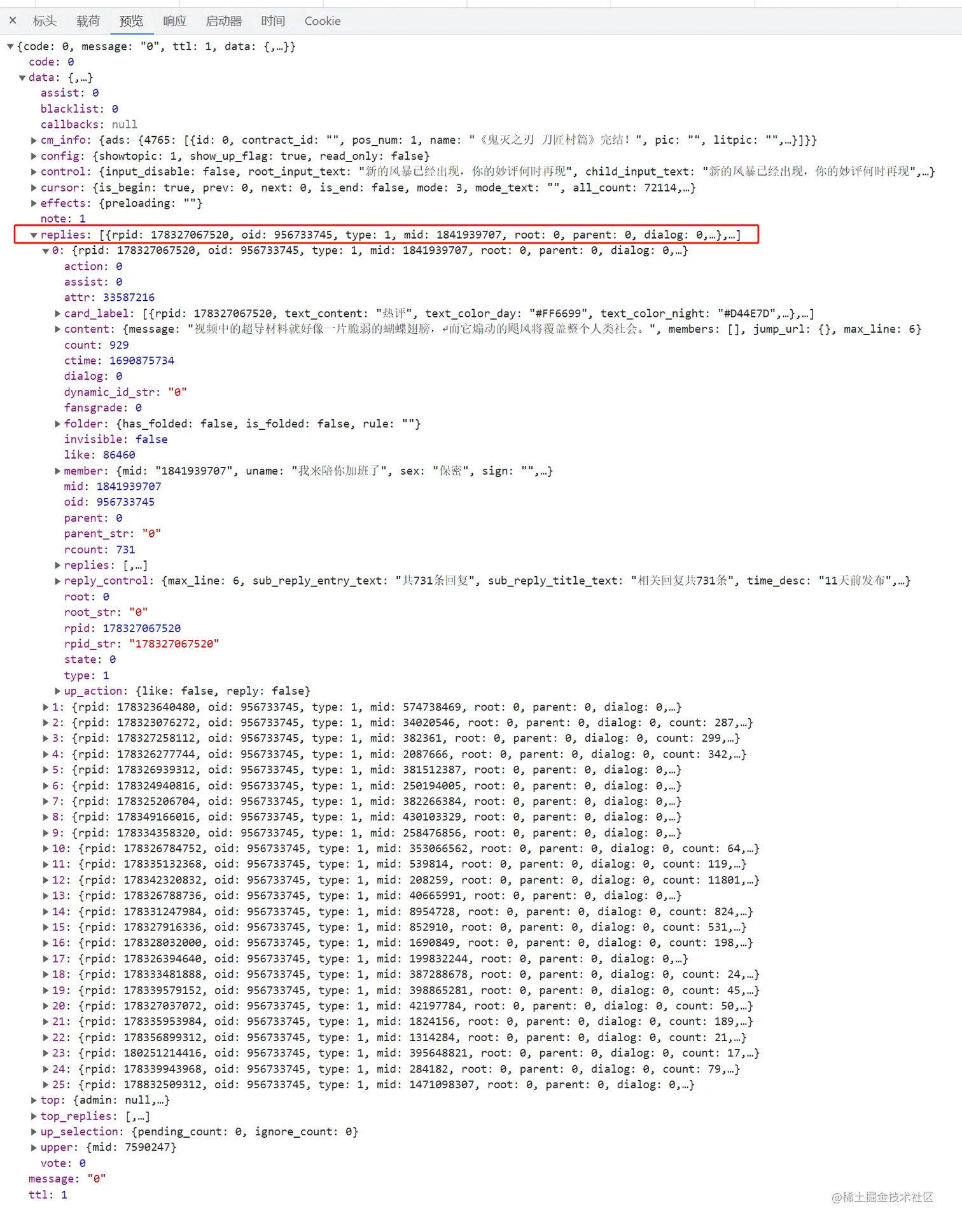凭借我多年的冲浪经验,通过不断下拉评论区触发“正在加载”接口: