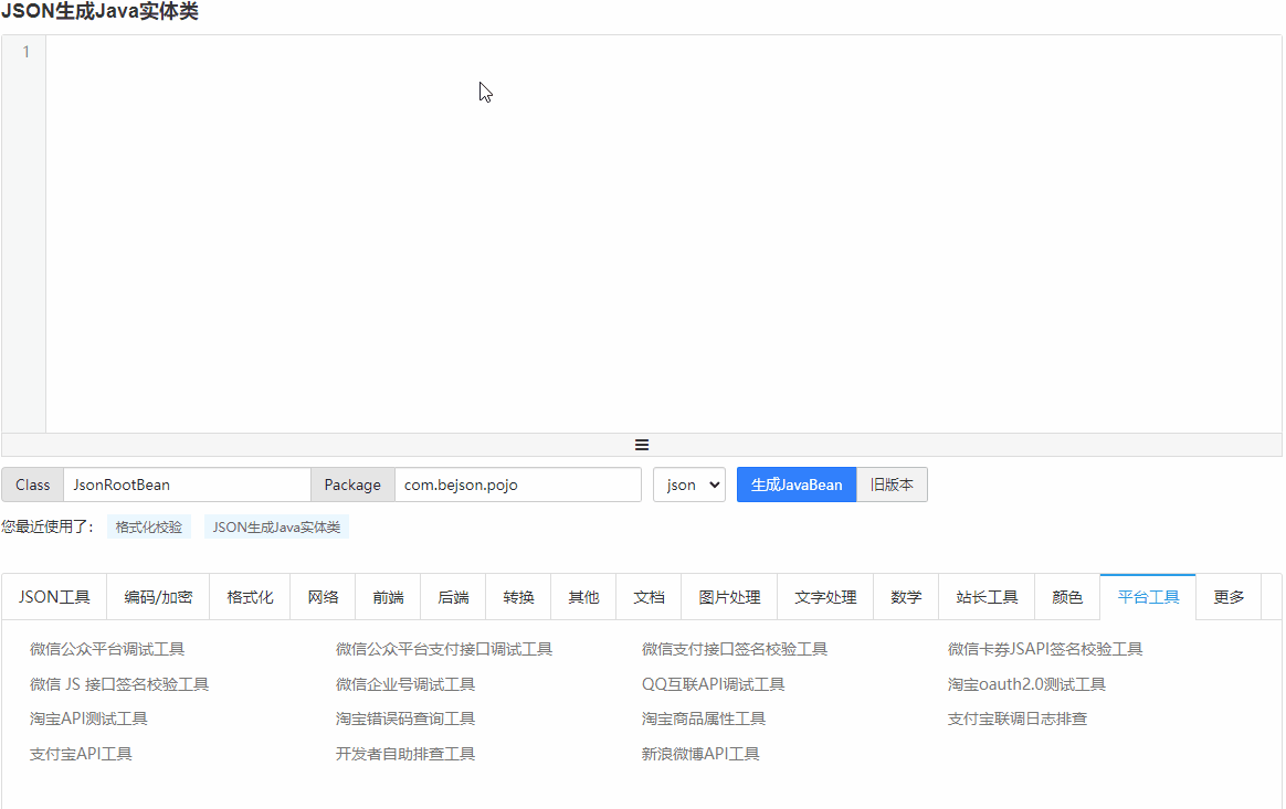 我直接把整个 json 串扔进去,它就帮我生成了对应的 Java 类实体对象。
