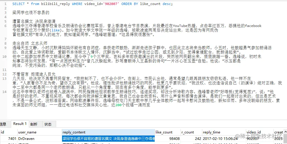 我去扒了一下这个视频评论,点赞最高的评论有近 10w: