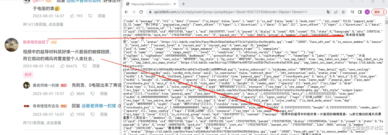 所以,当我对这个链接发起请求的时候,就能拿到对应视频下的评论: