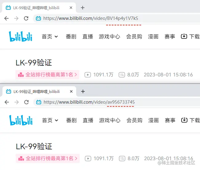 但是这两个地址,其实指向的是同一个视频: