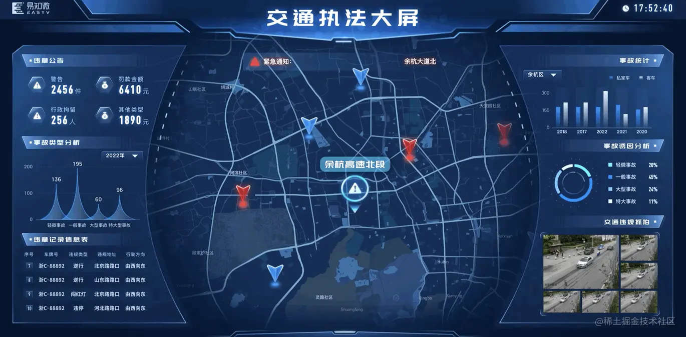 智慧城市交通建设可视化是指将先进的信息技术应用于城市交通领域,通过可视化技术的手段来实现交通建设的智能化和可持续化发展。随着城市化的快速发展和人口的不断增加,城市交通问题一直是人们关注的焦点。传统的城市交通建设方式已经无法满足现代社会对交通建设的需求,在此背景下,EasyV推出「智慧城市交通驾驶舱」大屏模板,助力城市交通问题解决。
