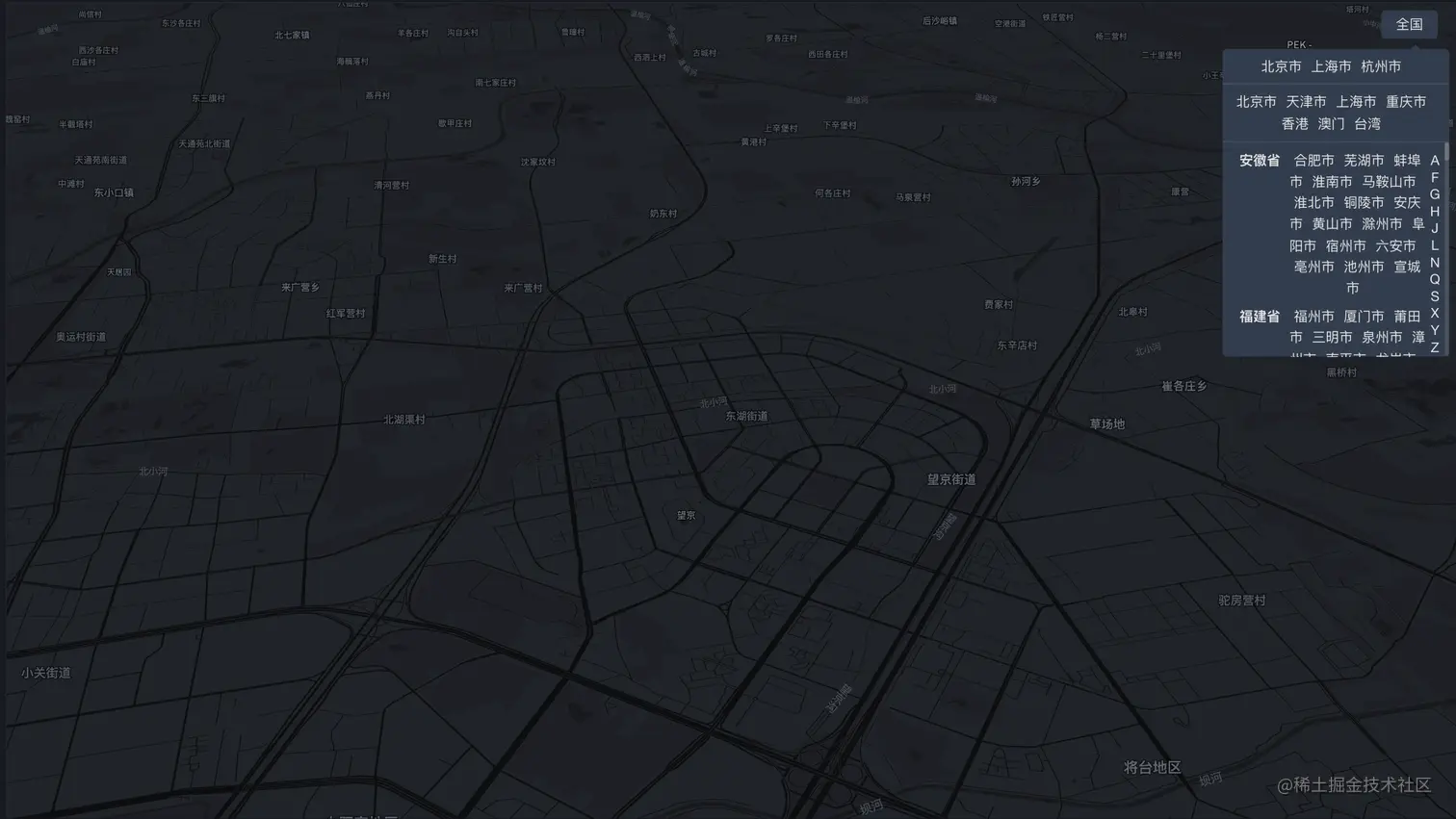 本模板中运用了3D城市-抢先版组件,通过卫星遥感技术、激光雷达、航空摄影等方式获取城市的地形数据,对山川河流、道路、建筑等信息进行展示。在组件编辑右上角,支持一键切换地区,全国地理信息一览无遗。同时支持以三维形式展现城市建筑群及相应地理信息数据,或自定义上传三维模型,在3D城市建筑基础上叠加点标记、电子围栏、飞线等地理信息子组件。