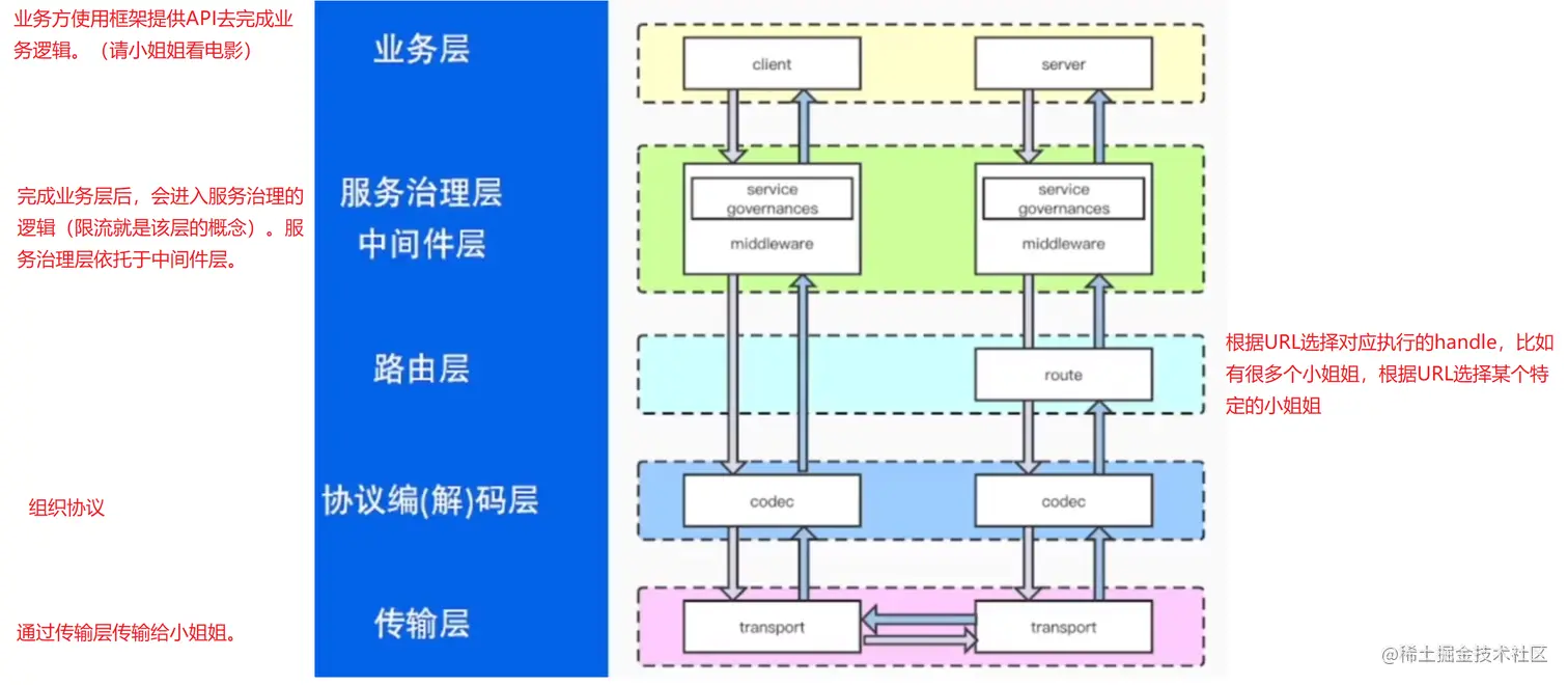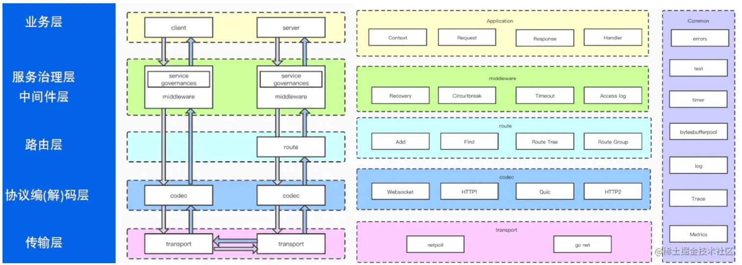 下图是HTTP框架设计的一个分层实践案例。它从上到下分为5层,层与层之间使用接口解耦。