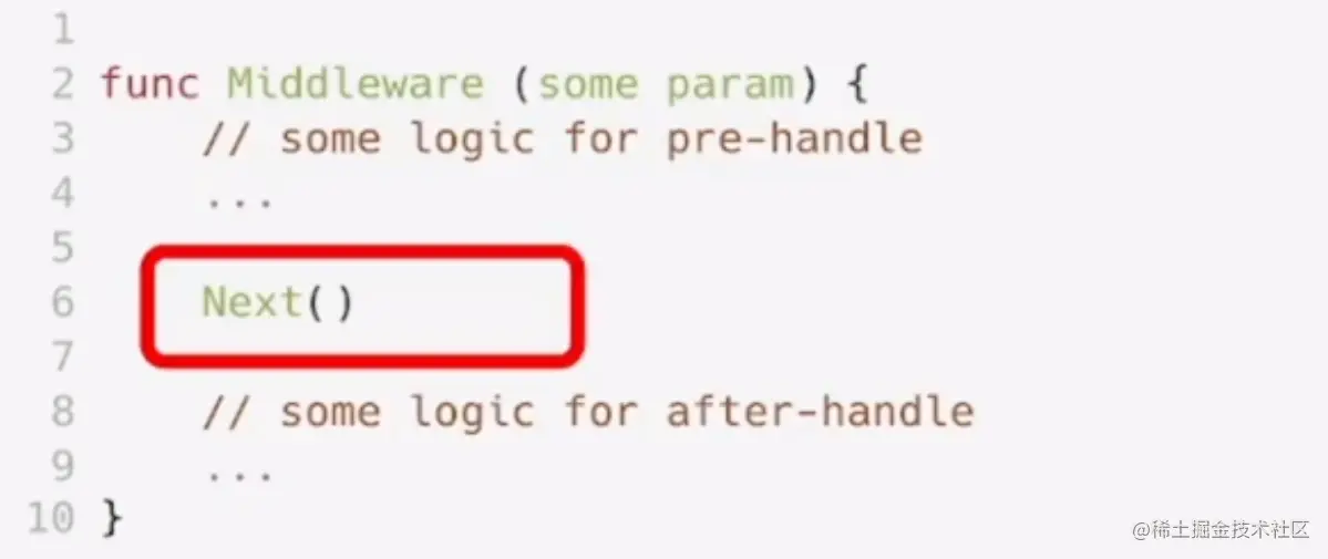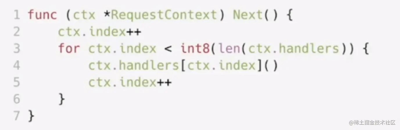- 如果用户不主动调用下一个处理函数,我们可以帮助用户自动调用以下之后的中间件。也就是说,可以帮助用户去实现这样一个逻辑: