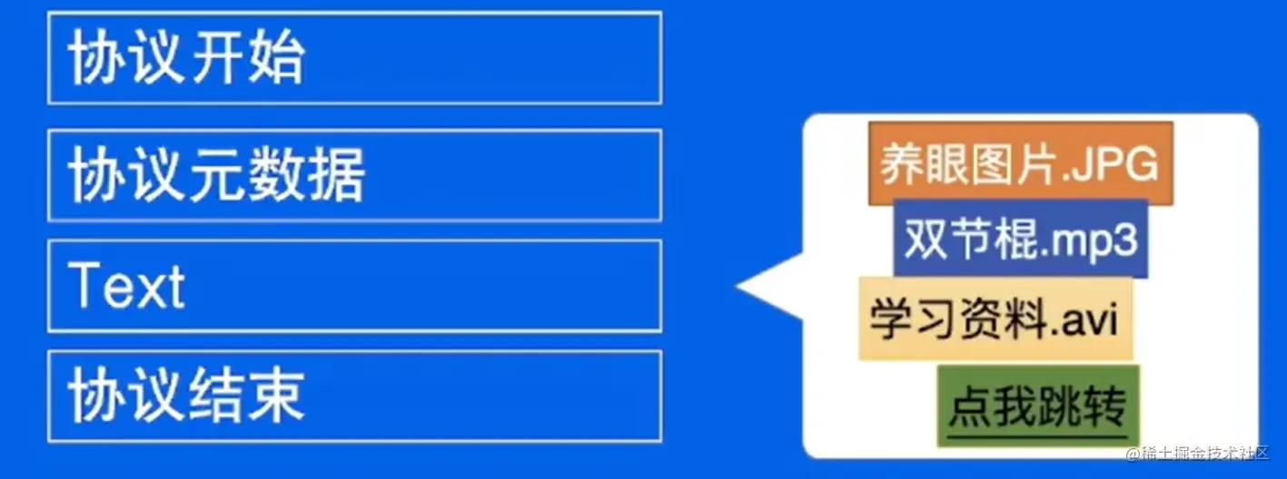 - 能携带信息。传输的消息有多种类型(文本、超链接、图片、音乐等等),首先需要明确传输的消息是什么类型的,然后,把这些消息的具体内容都塞到消息队列中,再进行传输。