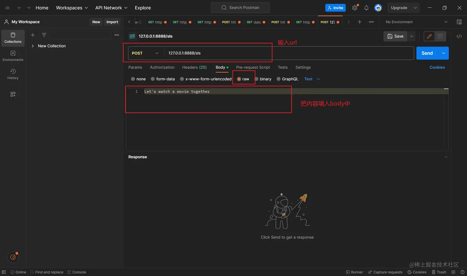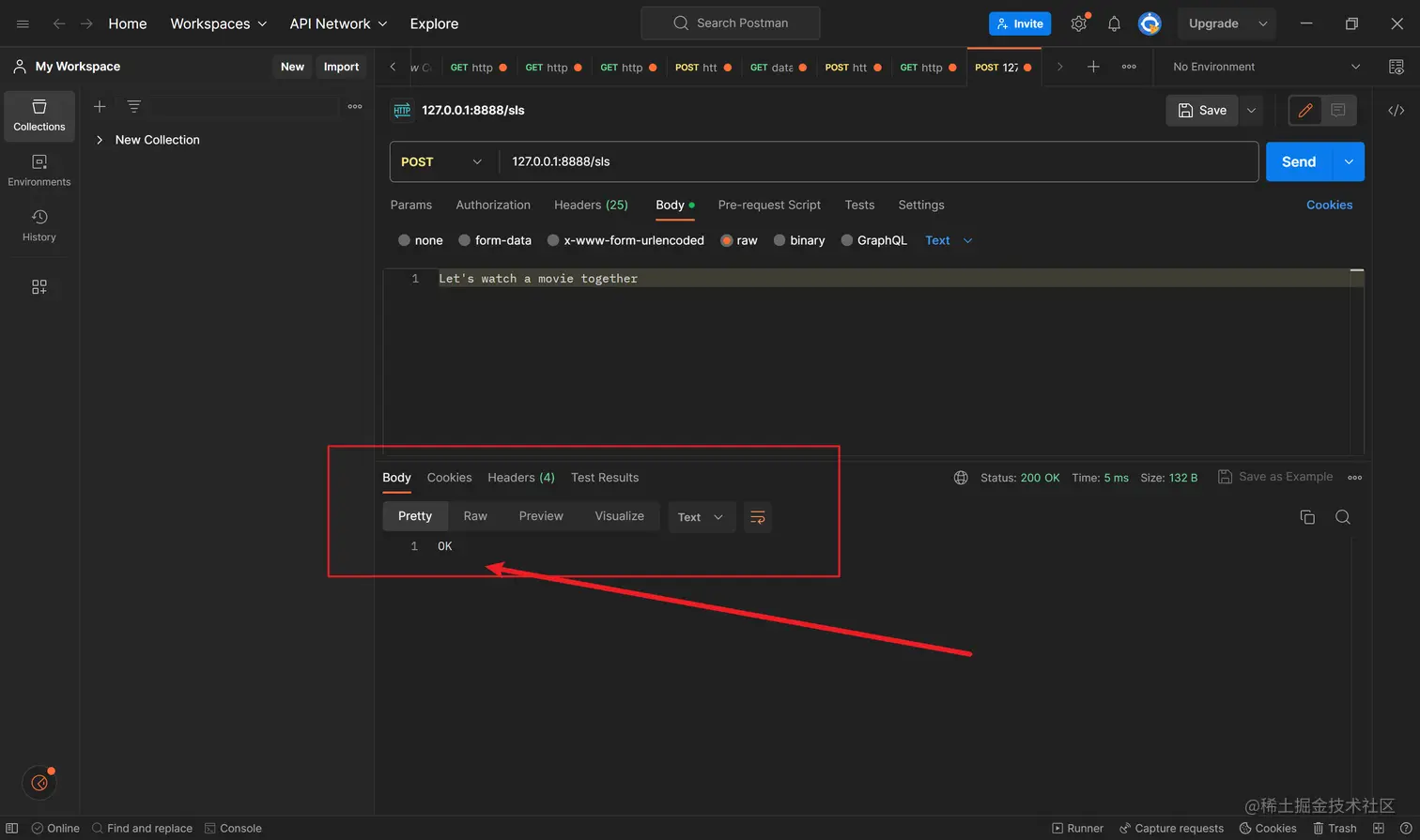 小姐姐作为接收方,在看到第一行的POST开始(只要检测到POST这一行),她就可以开始接收这个协议了。而协议的结束部分就是最后POST请求body的 Let's watch a movie together\n
