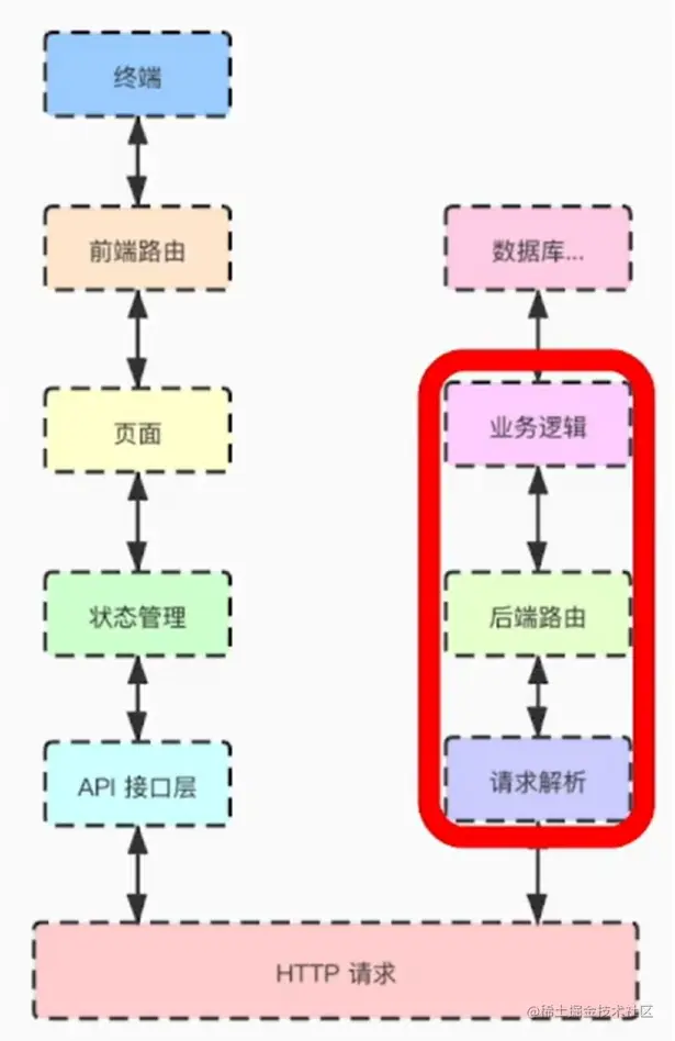 HTTP协议是前端,客户端,服务端之间通信的基础协议。下面这张图是前后端分离的流程图,前后端之间通过HTTP协议进行通信。HTTP框架负责的就是对HTTP请求的解析,根据对应的路由选择对应的后端的逻辑:
