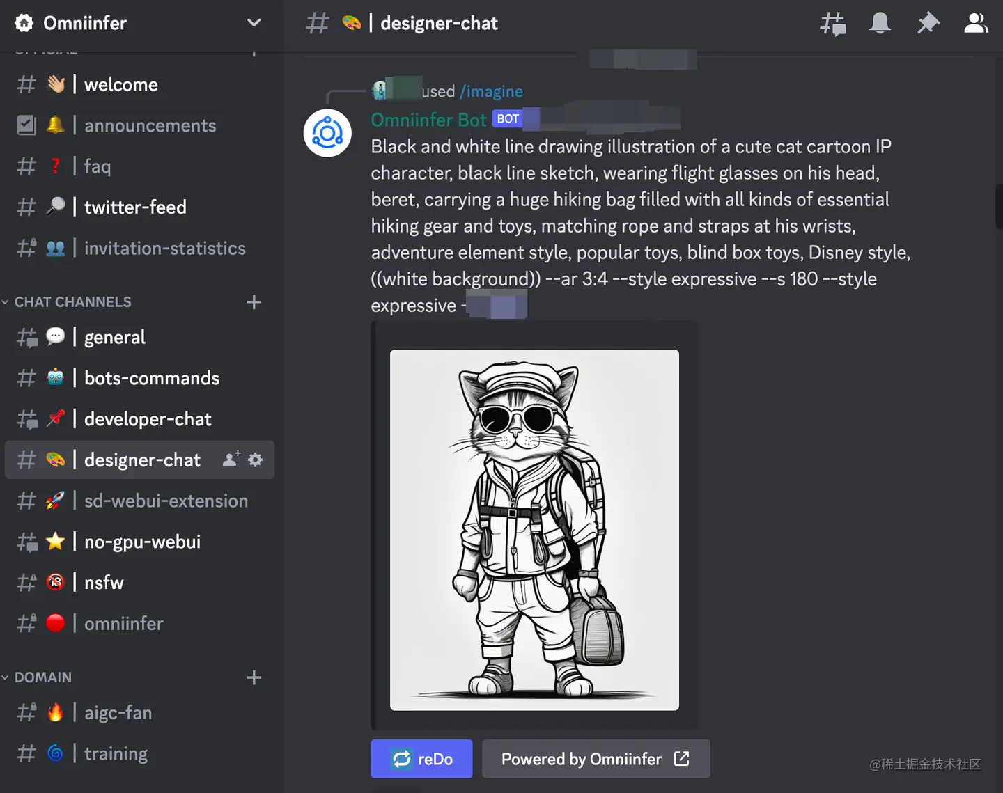 简介: 别出心裁的AI图像生成机器人Omniinfer正登场,用聊天的方式点亮创意的星空。 因为模型配置的是SDXL,做了一些基础预设,所以通过聊天的方式生成图片,通过简单的/imagine命令和提示词,即刻获得高质量图像。 无论是热门动漫角色的表情包,还是经典电影人物的形象,支持多风格,包含人物、动物、食物、建筑、自然、艺术等任何领域。这不仅提高了社区的活跃度,更带来了商业机会,比如通过粉丝付费产生的收入收佣金。