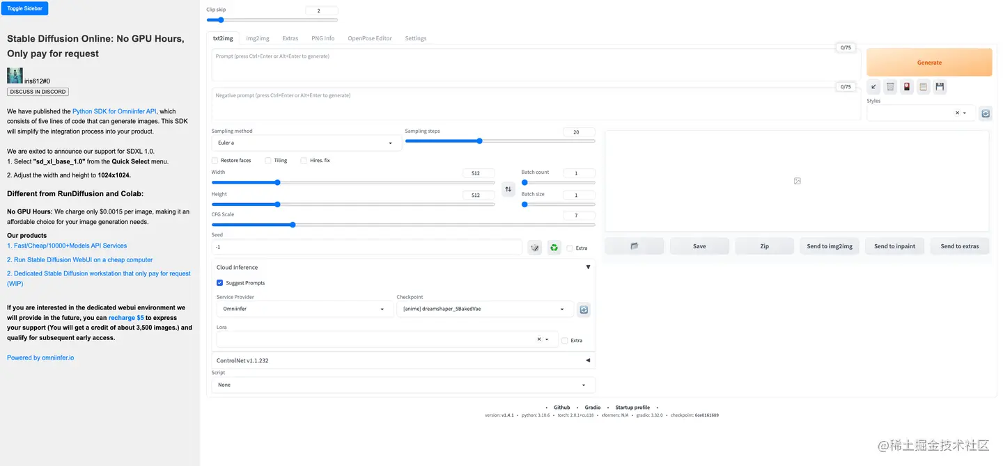 体验入口:Stable Diffusion(SDXL)WebUI Cloud Inference Extension