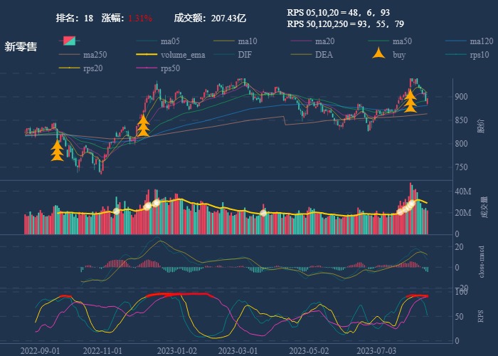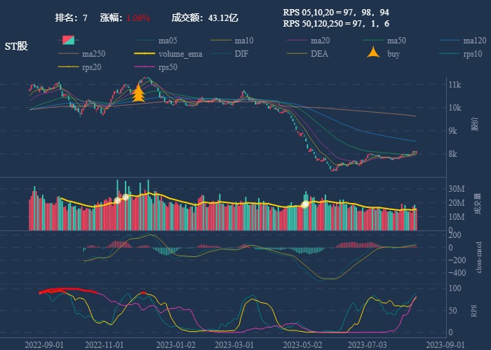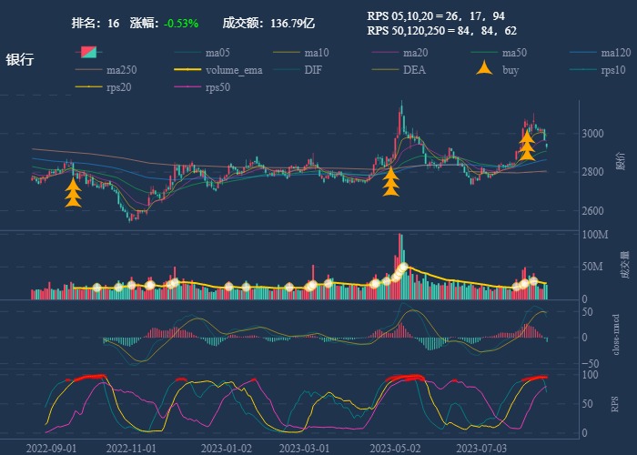 - 第一波行情 rps20 + 10日均线,第二波行情 rps50 + macd反转。