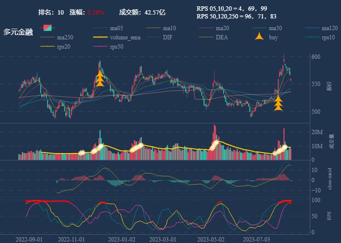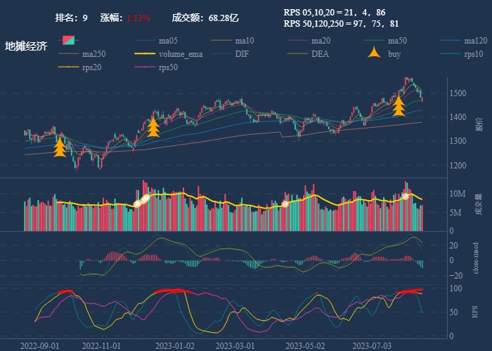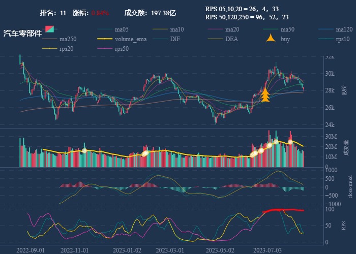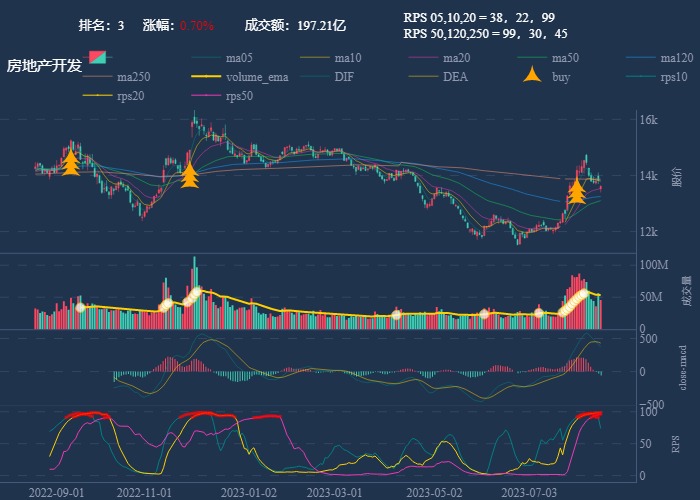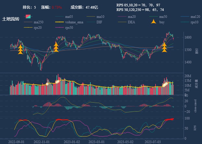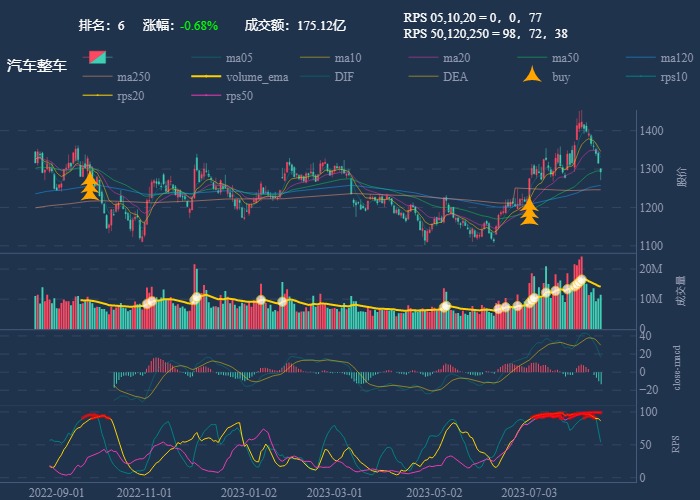 - 一线红:第一次买点出现后往往是顶峰,等回调,macd 反转,rps50 还一直红,第二次买点重现