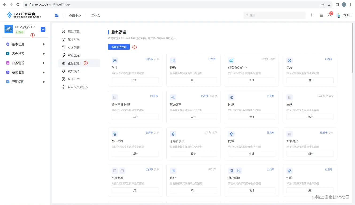 ③:点击新建业务逻辑,这里创建的业务逻辑是独立的逻辑