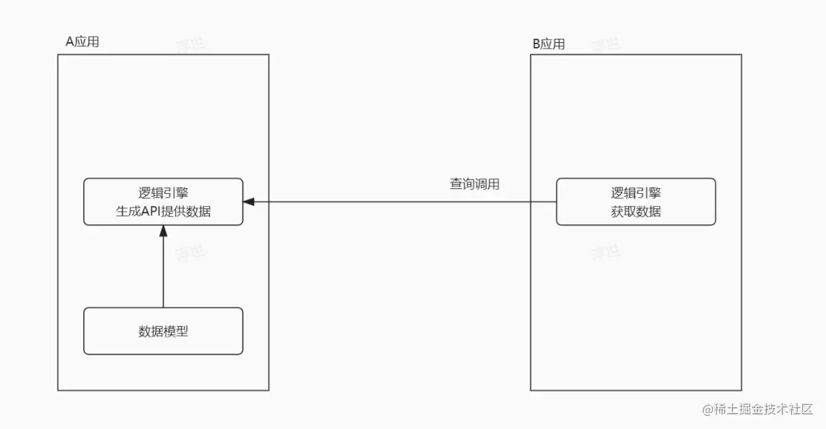 在低代码开发平台中,如何实现应用之间的数据共享呢?最标准的方式是通过接口,本文介绍JVS轻应用如何实现将数据通过API输出、轻应用如何实现体内API数据的获取?实现方式如下图所示,不管是数据提供方,还是数据查询方,都通过逻辑引擎实现,通过逻辑对逻辑的使用方式,如下图所示: