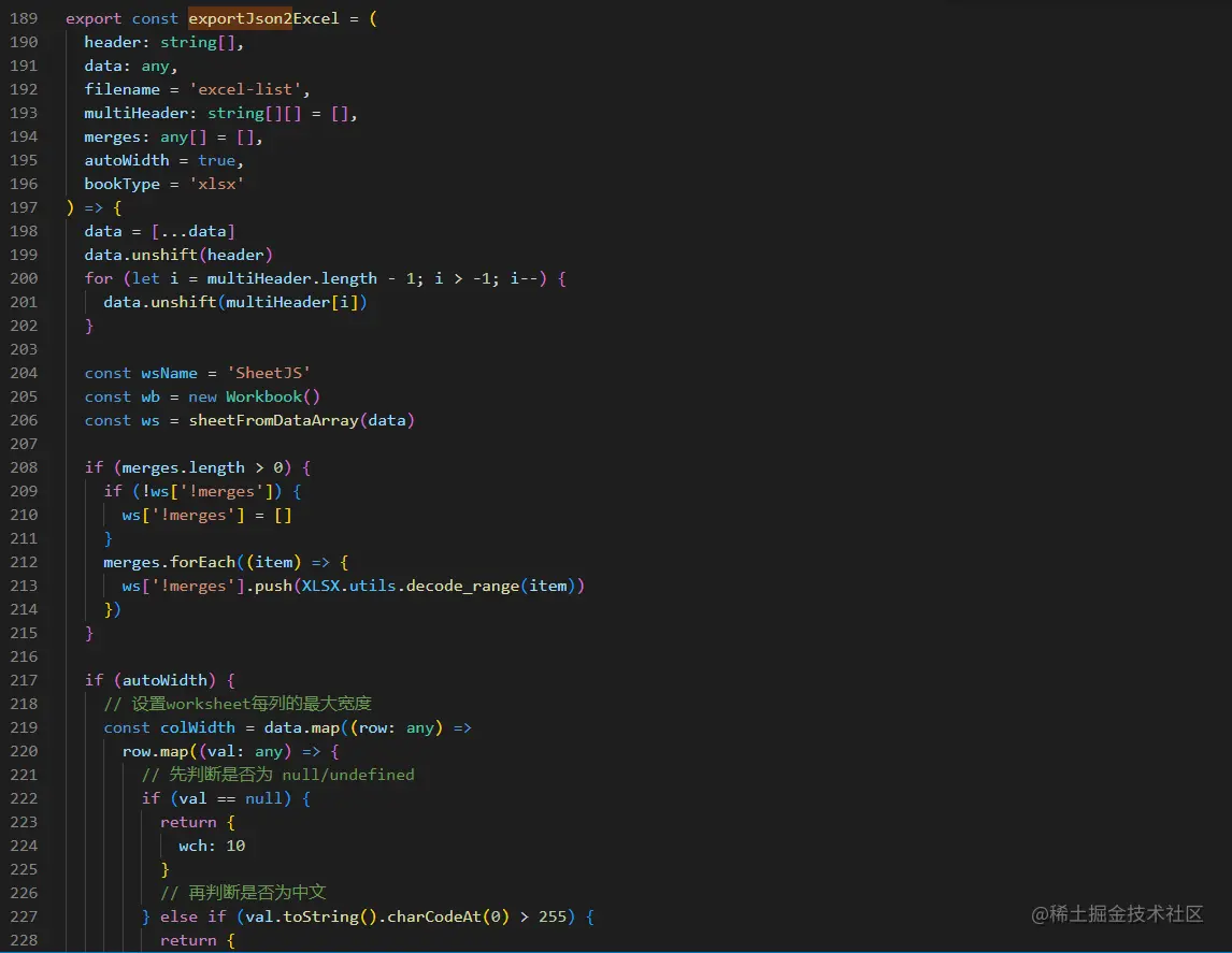 官方内置的这种导出方式情况适用于表格不做自定义处理,简单展示的那种情况,表格展示什么样子,导出就是什么样子