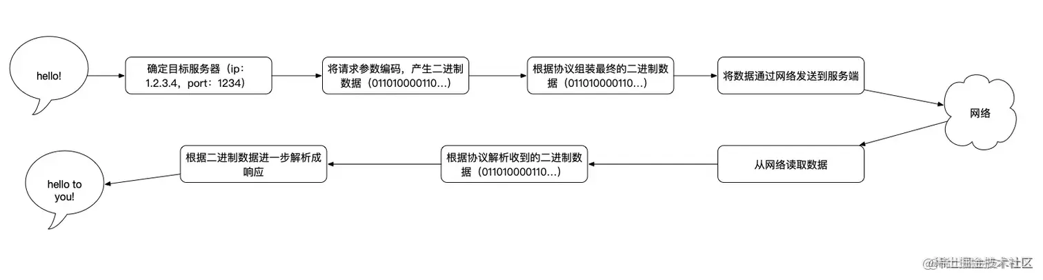 - protocol 表示通信协议,也就是二进制数据是如何组成的,RPC框架中很多功能都需要协议层的支持
