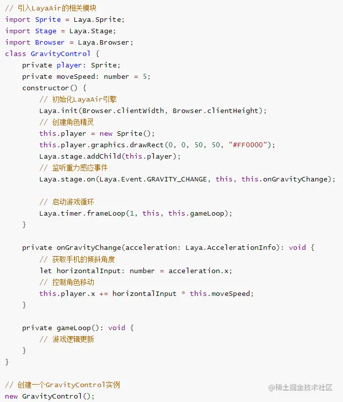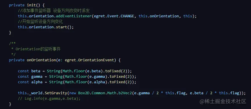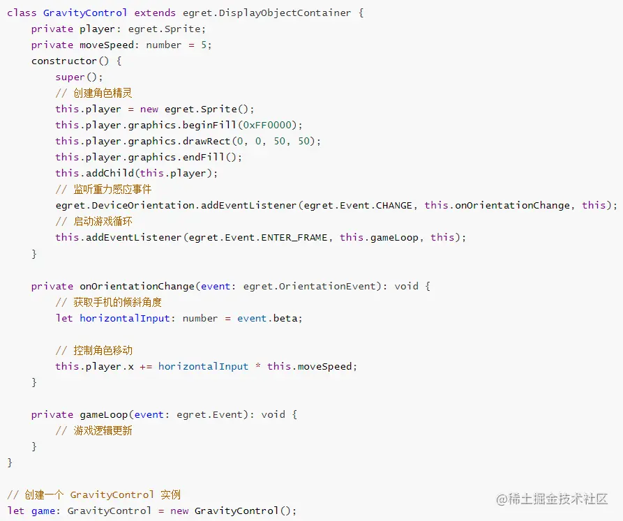 在 Egret 引擎中,接入重力感应可以通过 TypeScript 或 JavaScript 来实现。以下是一个示例,展示了如何在 Egret 引擎中接入重力感应,控制游戏角色的移动: