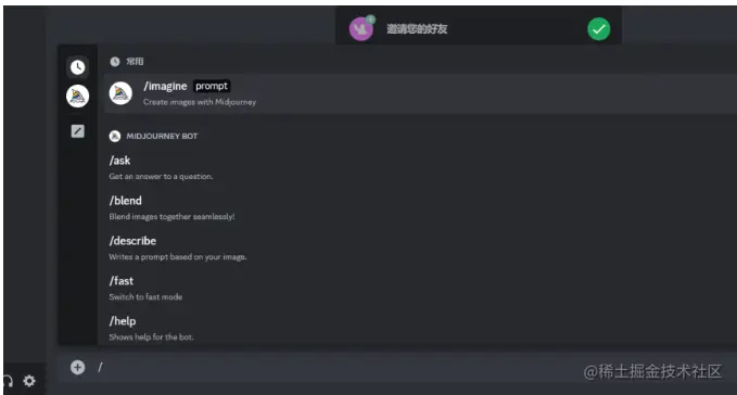 直接在输入框输入/imagine
