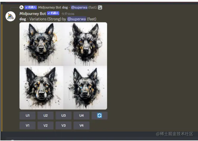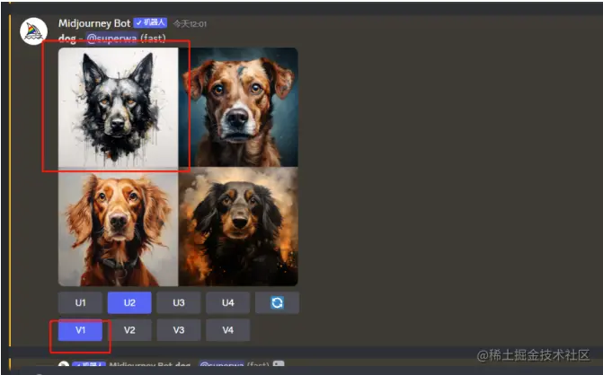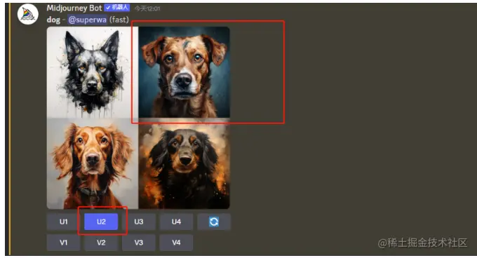 可以看到已经生成成功 我们可以看到,图片下方有几个按钮分别是U/V开头 什么意思呢