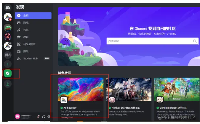 接下来,我们需要为midjourney准备服务器,进入discord