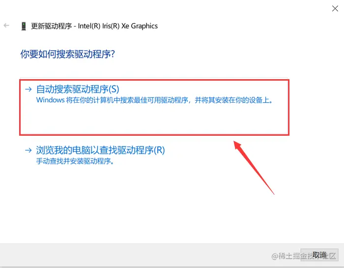 3.选择【自动搜索更新驱动程序】 ,系统将自动在互联网上查找并安装最新驱动程序。