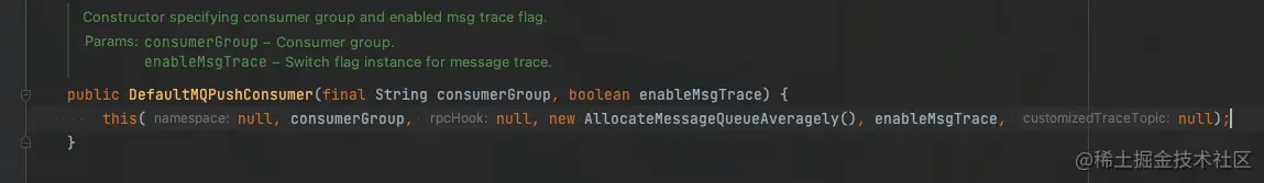 DefaultMQPushConsumer consumer = new DefaultMQPushConsumer(CONSUMER_GROUP, true);