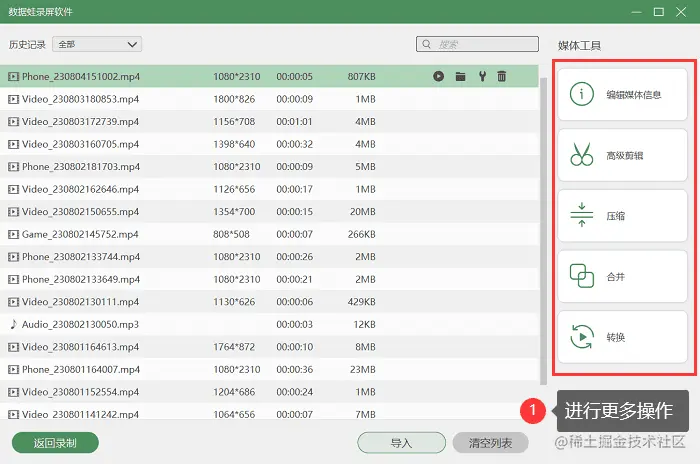 第3步:点击 “录制” 按钮,软件将开始录制您的手机屏幕。在软件界面中,点击 “录制历史” 即可查看您录制的所有视频。