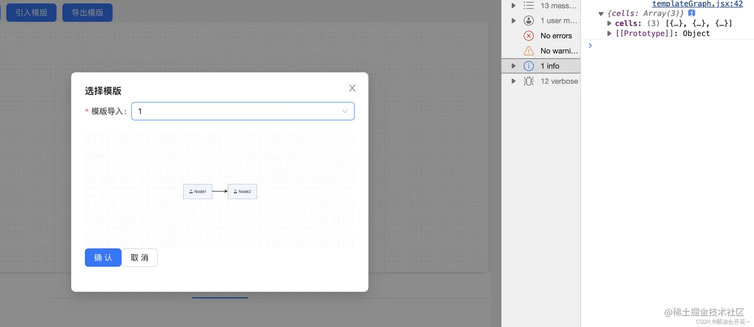 antv X6 的模版预览比较简单,这边是抽成一个组件,只需要从父组件把要预览的数据导出之后,传递到模版预览组件就好了。