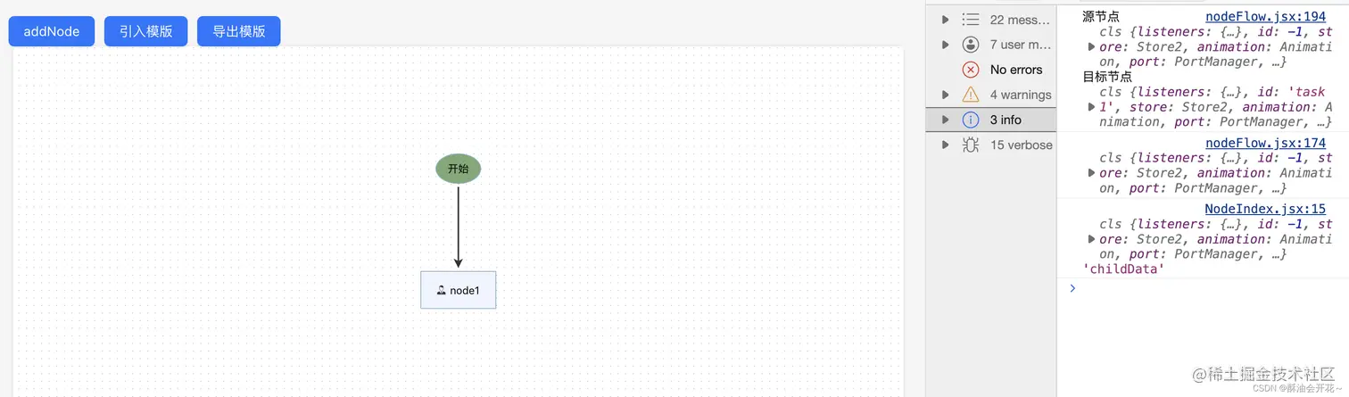 在useEffect中加入这段代码,当你连接两个节点时,就能获取到源节点 和 目标节点的信息,比如:ID、Label等。