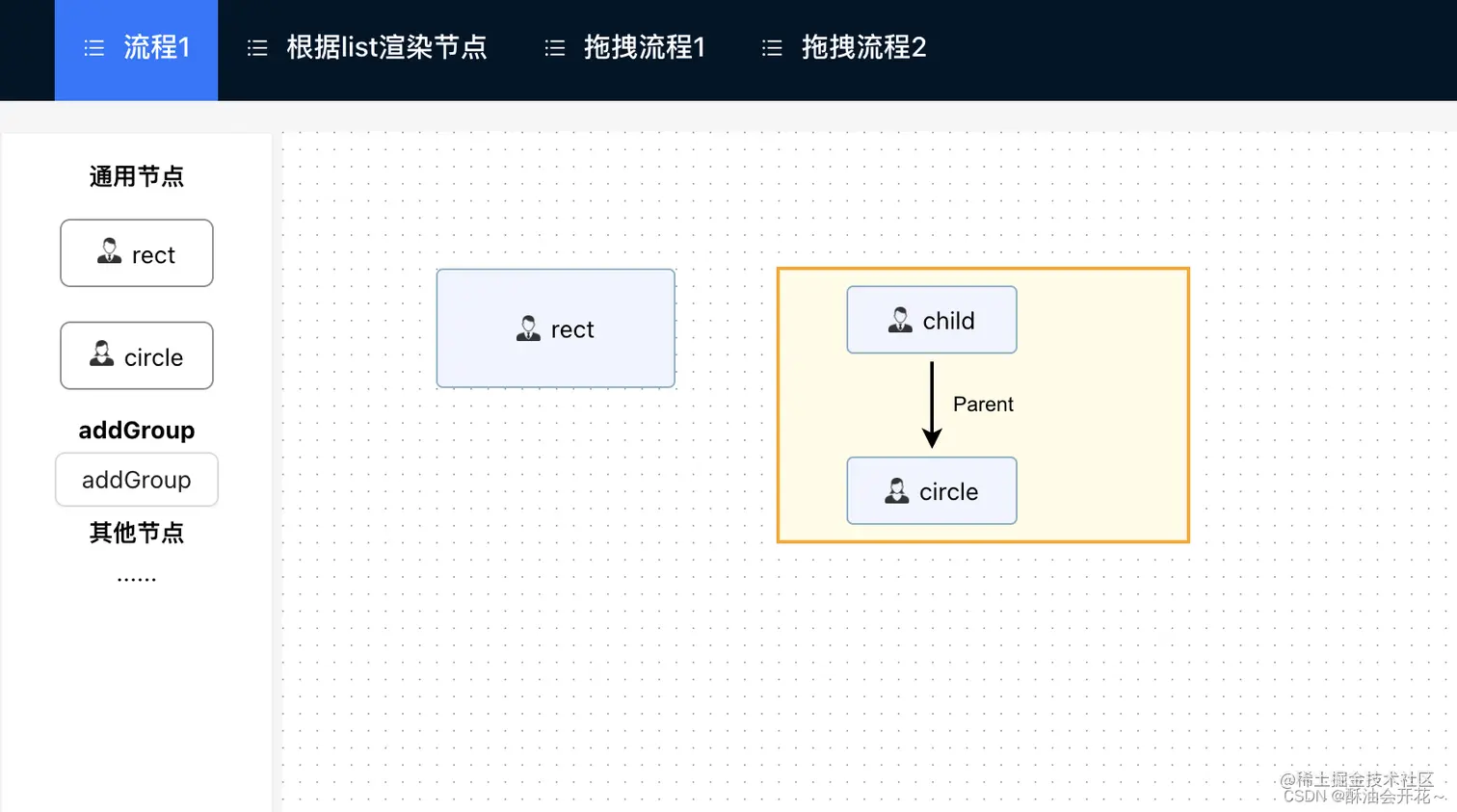 6、使用拖拽组件添加节点(包含2种样式 及群组的添加);