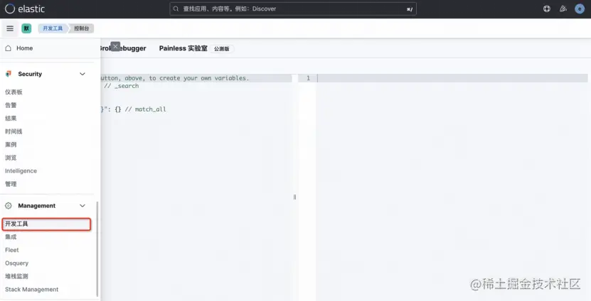 - 左侧菜单栏 “Management” 进入 “开发工具”