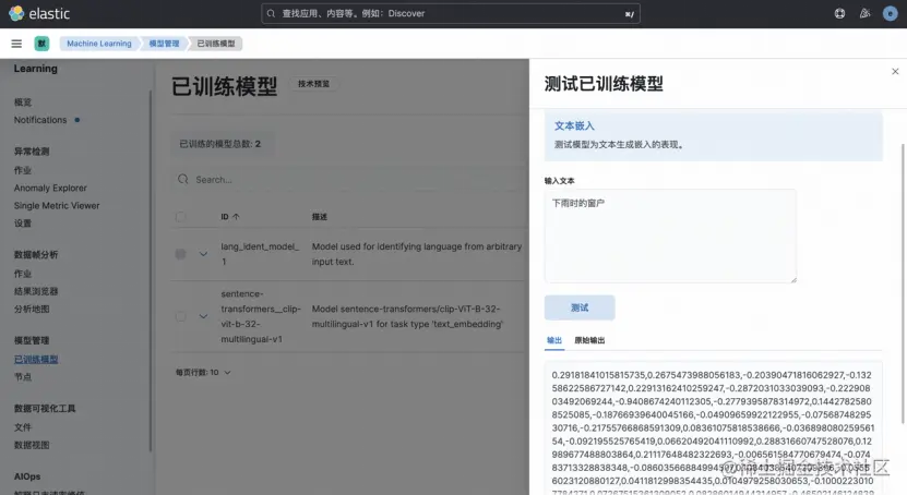 该模型支持中英文的文本转换,成功转化为向量后,说明模型部署成功。