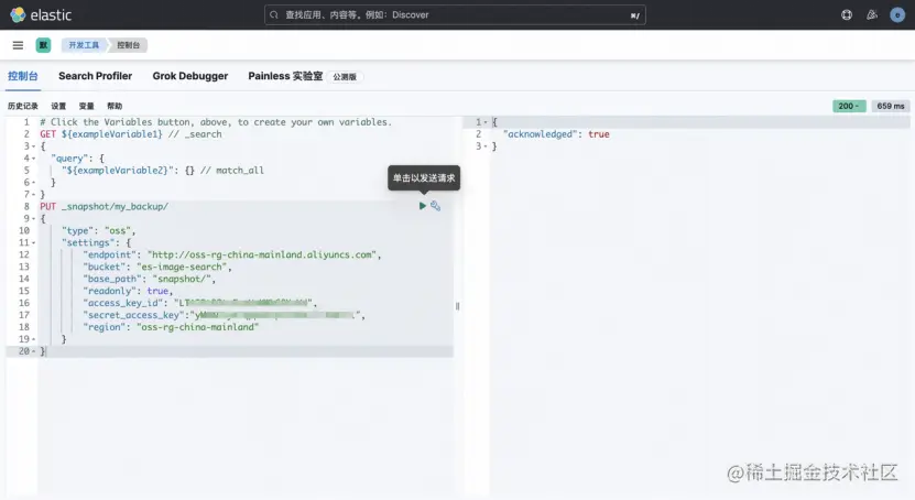 1)创建快照仓库并指定公共读的阿里云 OSS bucket 作为源存储库