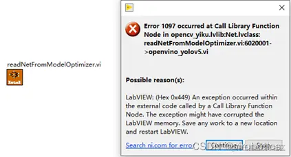 Q9:为什么我已经安装了OpenVINO toolkit2021.4.2并且也进行了环境配置,但是运行demo过程中,readNetFromModelOptimizer.vi会出现如下报错?