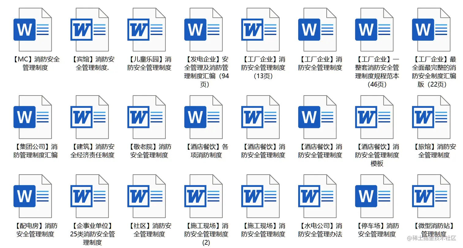 包含工厂企业、企事业单位、酒店、建筑公司、物业、社区、医院等各行业的安全管理制度范本,内容完整。管理制度中详细介绍了消防安全职责,不同单位的消防安全制度、操作规程,以及如何建立完善的消防安全管理体系和机制,实行标准化管理。