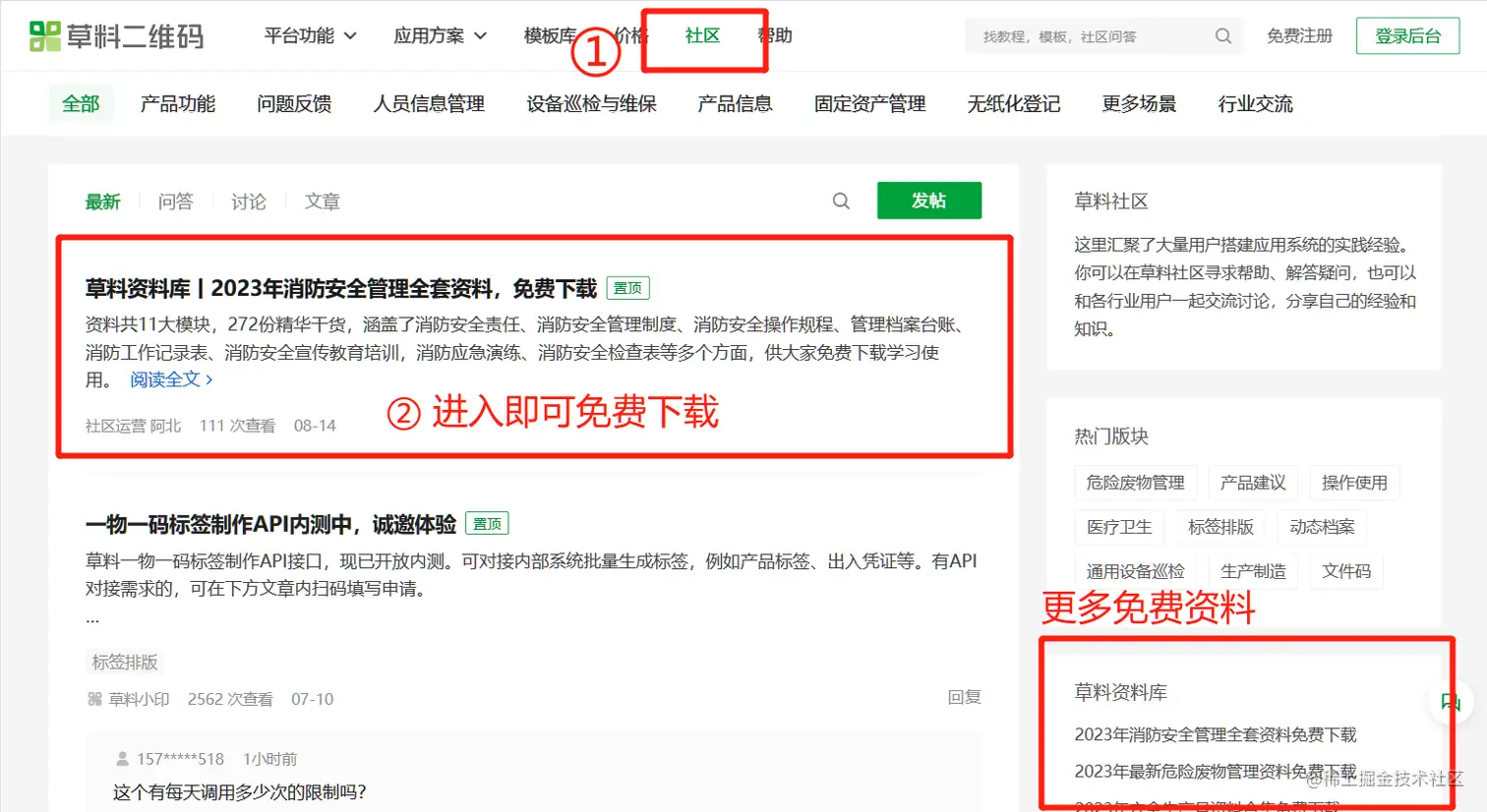 所有资料均免费,即拿即用,百度搜索“草料二维码”,进入草料官网,点击“社区”,进入置顶文章即可下载
