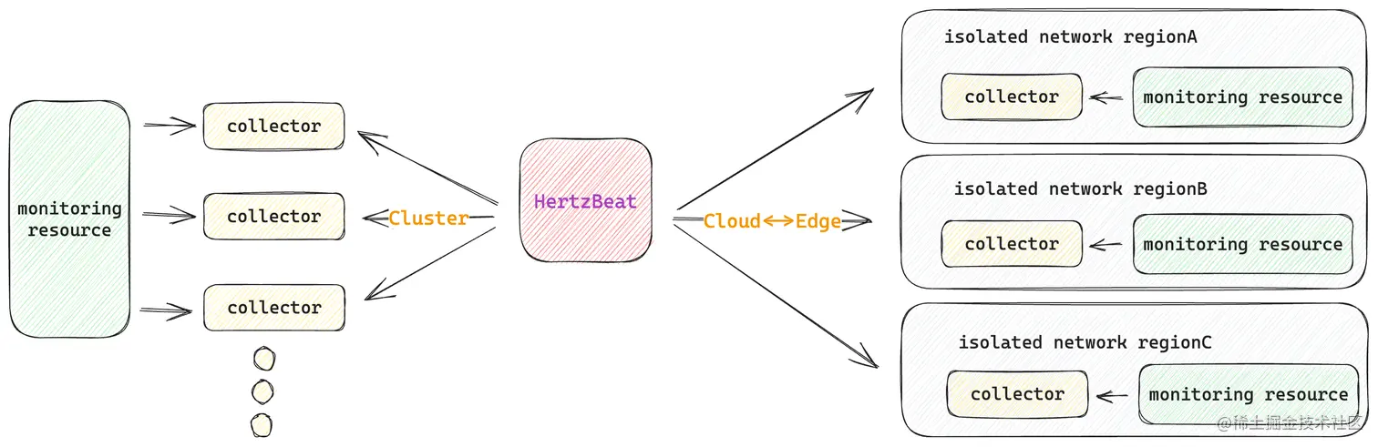 我们之前的hertzbeat一直是单机版本,组件代码模块化但不支持采集器独立部署,所支持的监控数量上限受到了单节点的天然限制,且无法应对多个隔离网络的资源的统一纳管。