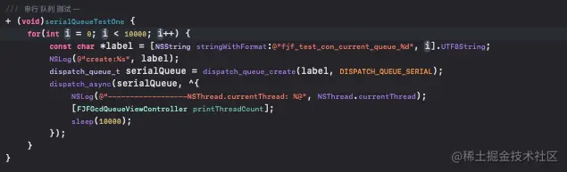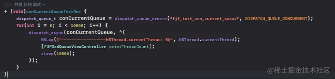 首先跟全局并发队列测试方式一致,通过1万次for循环调用自定义的并发队列的子线程来执行打印任务,并进入休眠。