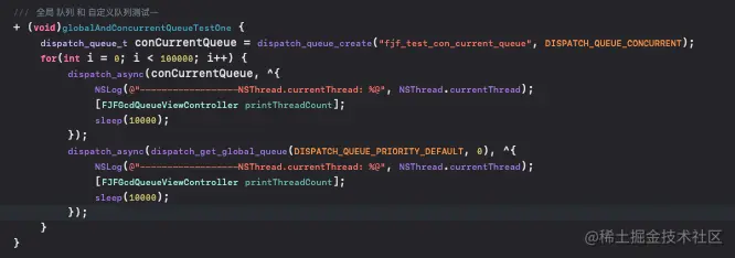 我们依旧通过1万次for循环调用自定义的并发队列和全局并发队列,来执行打印任务,并进入休眠。