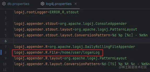 修改日志文件的路径(log4j.appender.R.File这一行):
