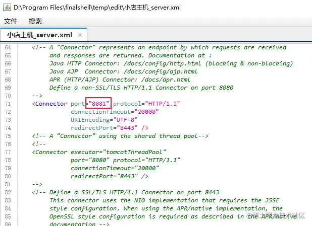 还有个要注意的就是端口号,如果有其他的服务在跑占用了8080(比如我的Jenkins就用的这个端口),那就需要修改tomcat默认的端口号: