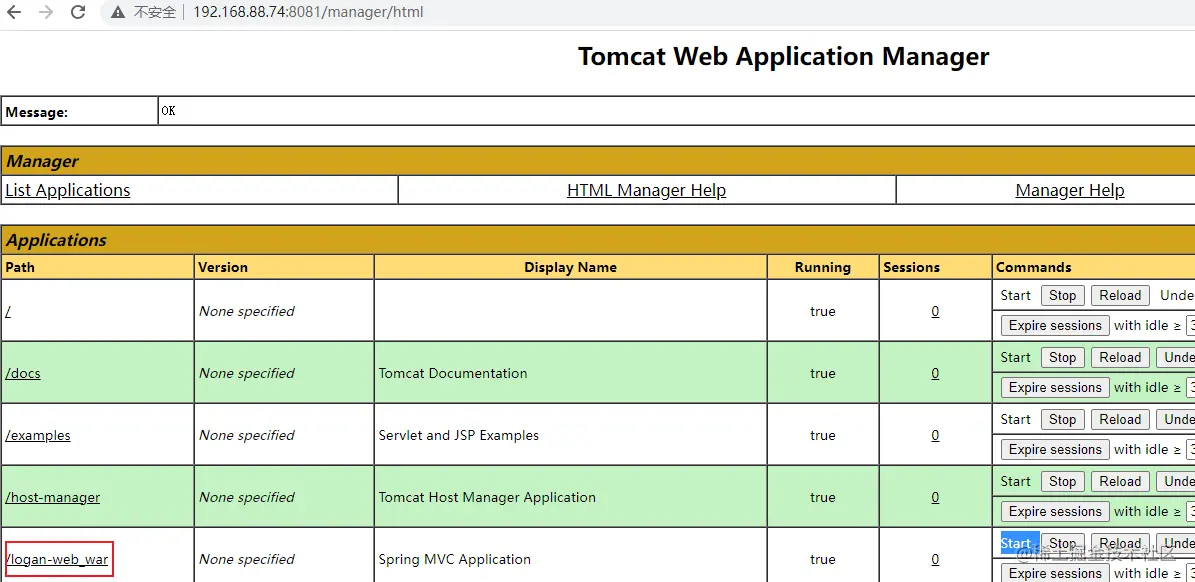 这里可以看到我们部署的logan成功了,路径是/logan-web_war,那么我们logan服务器的地址就是: