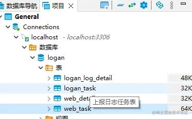 创建好这4个表之后,在DBeaver的logan数据库上右键刷新就可以看到新创建的表