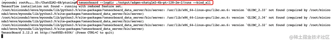 tensorboard --logdir ./output/adgen-chatglm2-6b-pt-128-2e-2/runs --bind_all