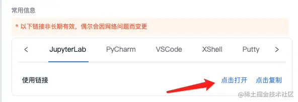 机器启动成功后,我们点击租用页面 Jupyterlab 点击打开。